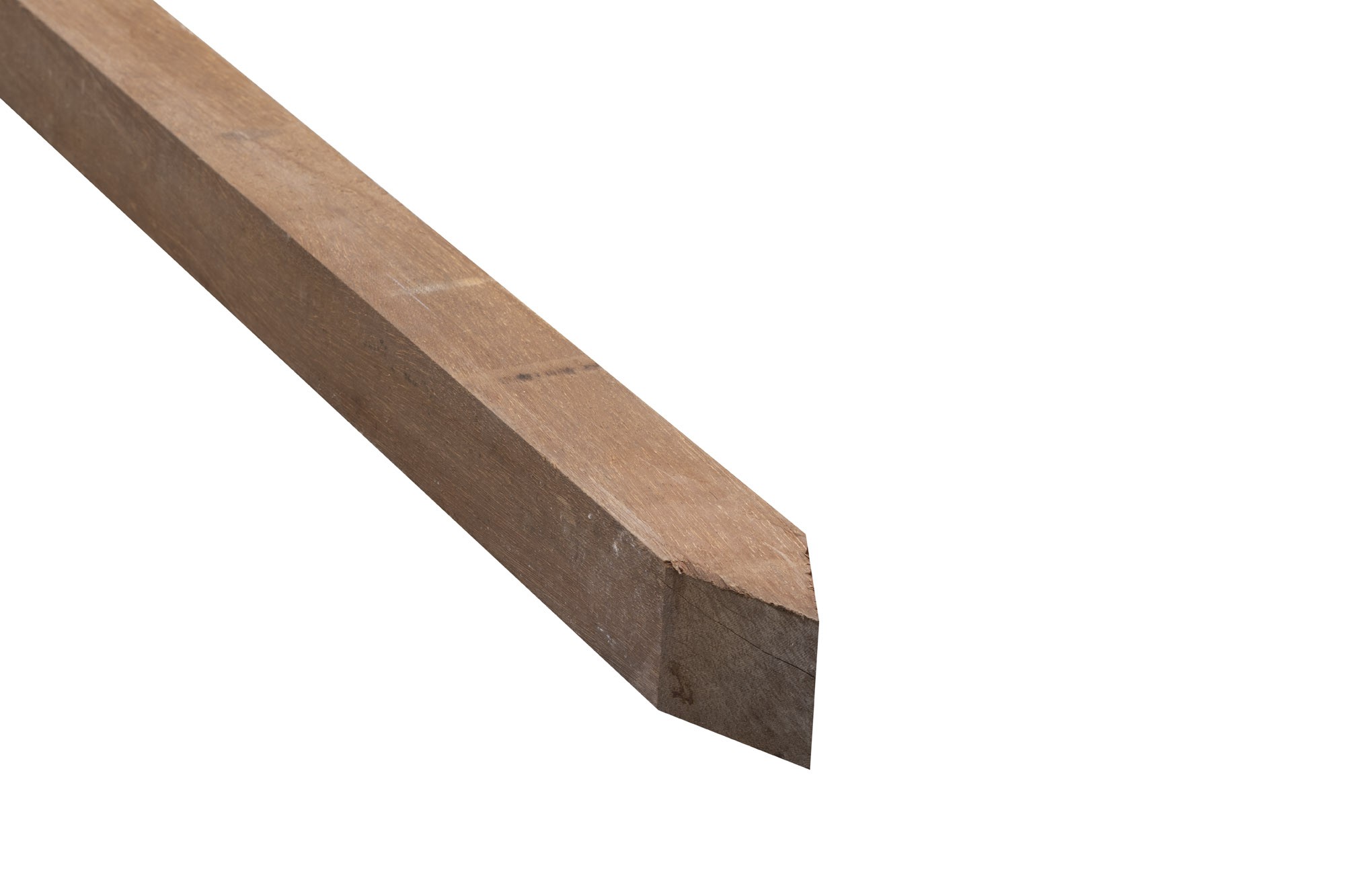 Azobe is een mooie harde houtsoort met een rode tot chocoladebruine kleur. Door weersinvloeden zullen de palen uiteindelijk vergrijzen. Azobe palen, balken en planken hebben een duurzaamheidsklasse 1 en gaan zowel boven als onder de grond 20 tot 25 jaar mee. Azobe is relatief zwaar en is wat onrustig. Wacht daarom niet te lang met het verwerken van uw balken tot eindproduct.