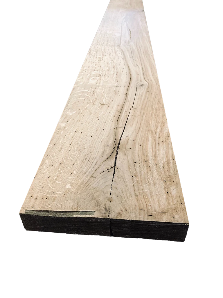 De planken bevatten pinholes, knoesten en scheuren. Deze planken zijn daarmee perfect om te verwerken in een oud eiken meubel.
